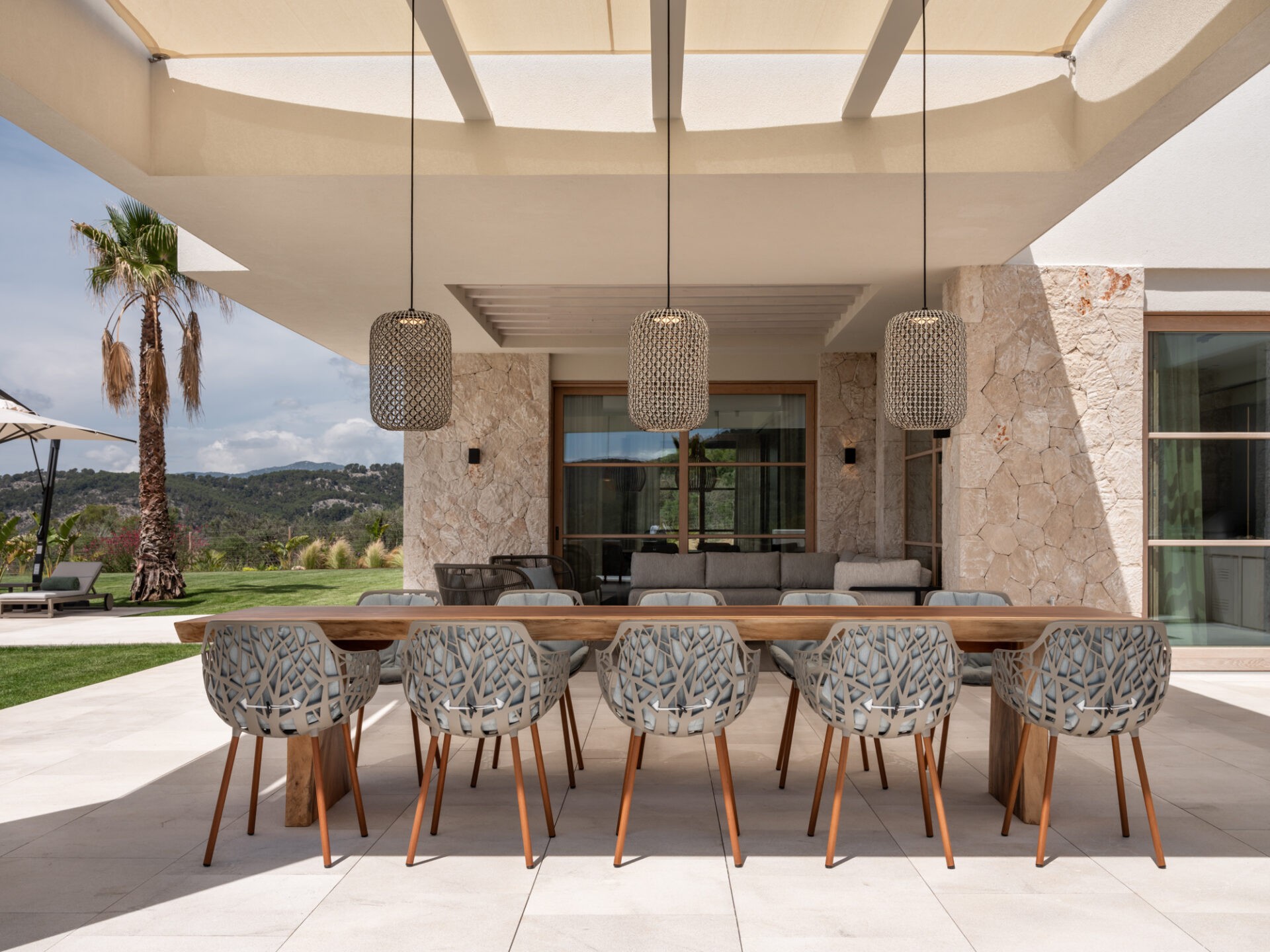 Das Innere der Finca ist nicht aufdringlich, sondern zeitlos und von skandinavischen Akzenten geprägt. Der pflegeleichte Garten ist auf den Pool- und Terrassenbereich sowie die Auffahrt reduziert und kann auf Kundenwunsch erweitert werden. Ziel ist es, ein pflegeleichtes Haus zu schaffen, das trotz seiner Größe nicht mehr Arbeit und Zeit kostet als eine moderne Villa in einer Urbanisation.